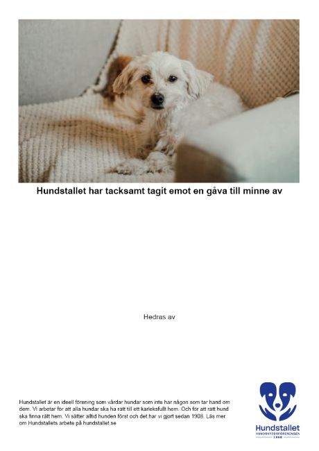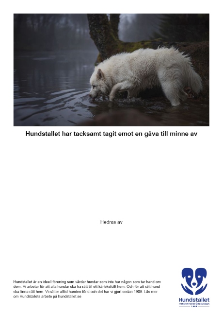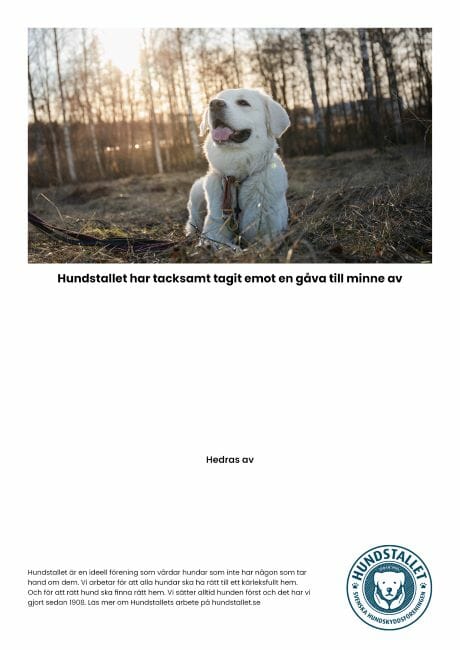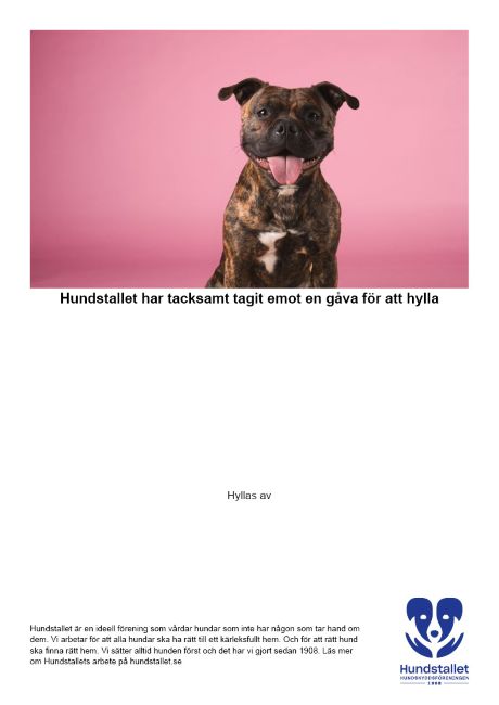 Varje år får hundratals utsatta, hemlösa och övergivna hundar en andra chans tack vare människor som dig. Ditt stöd behövs för att fortsätta ge dessa hundar trygghet, vård och kärlek. Tillsammans ger vi hundarna den framtid de förtjänar.