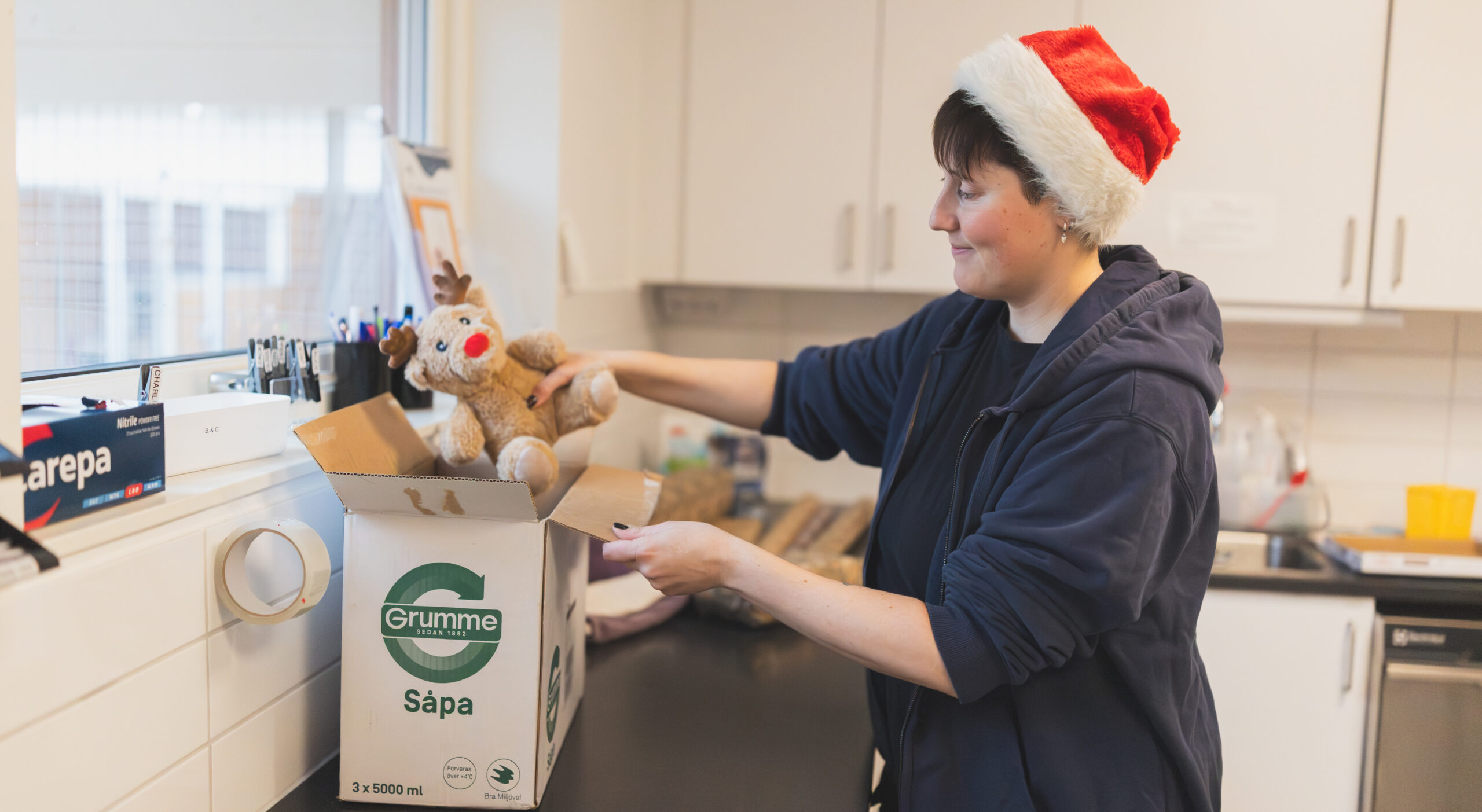 Förra året skrev personalen små julrim som de läste upp utanför boxarna innan de lämnade in paketen. Hundarna satt förväntansfulla med viftande svansar. Det var svårt att avgöra vem som hade roligast, hundarna eller personalen.