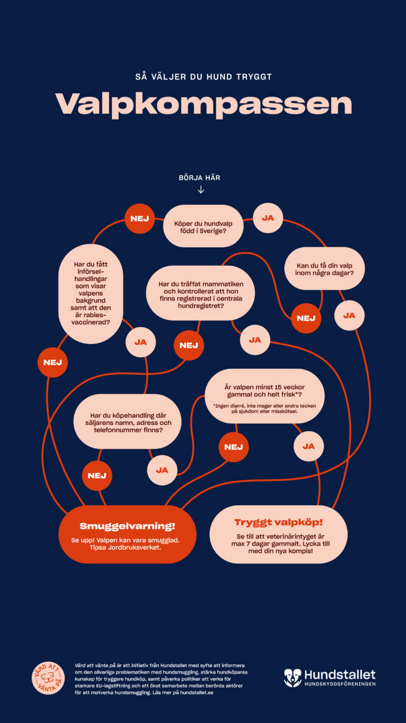 Gör vår valpkompass för att bli en informerad hundköpare och minska risken att du köper en smuggelhund.