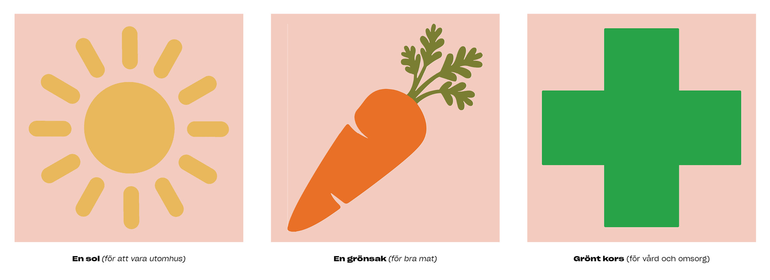 Det gröna korset visar att det är viktigt att få hjälp om man blir sjuk – för människor handlar det om vård, för hundar om att få gå till veterinären.