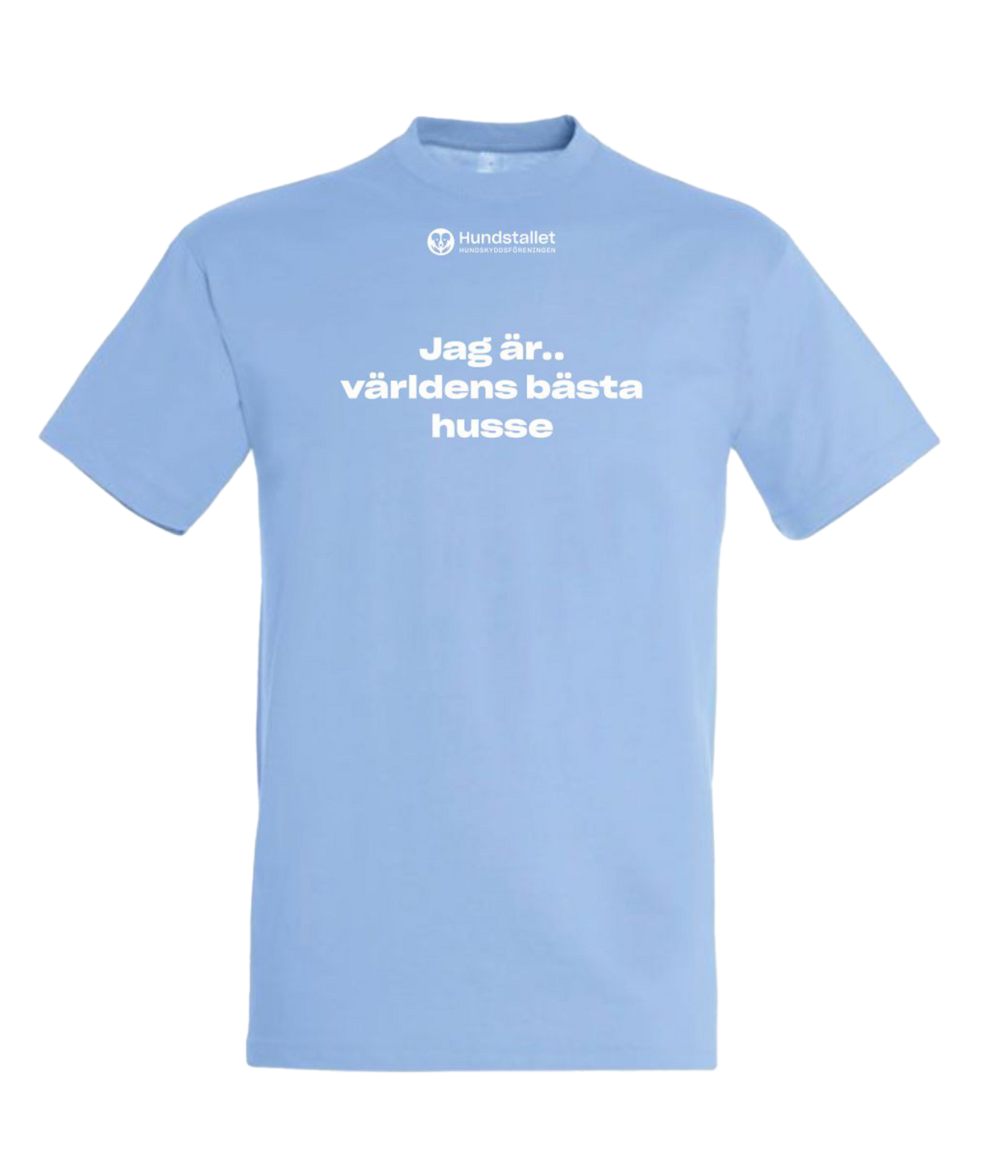 Jag är… världens bästa husse. Årets husse-t-shirt är ljusblå med vitt tryck. Finns bara i begränsad upplaga så passa på innan den tar slut.
