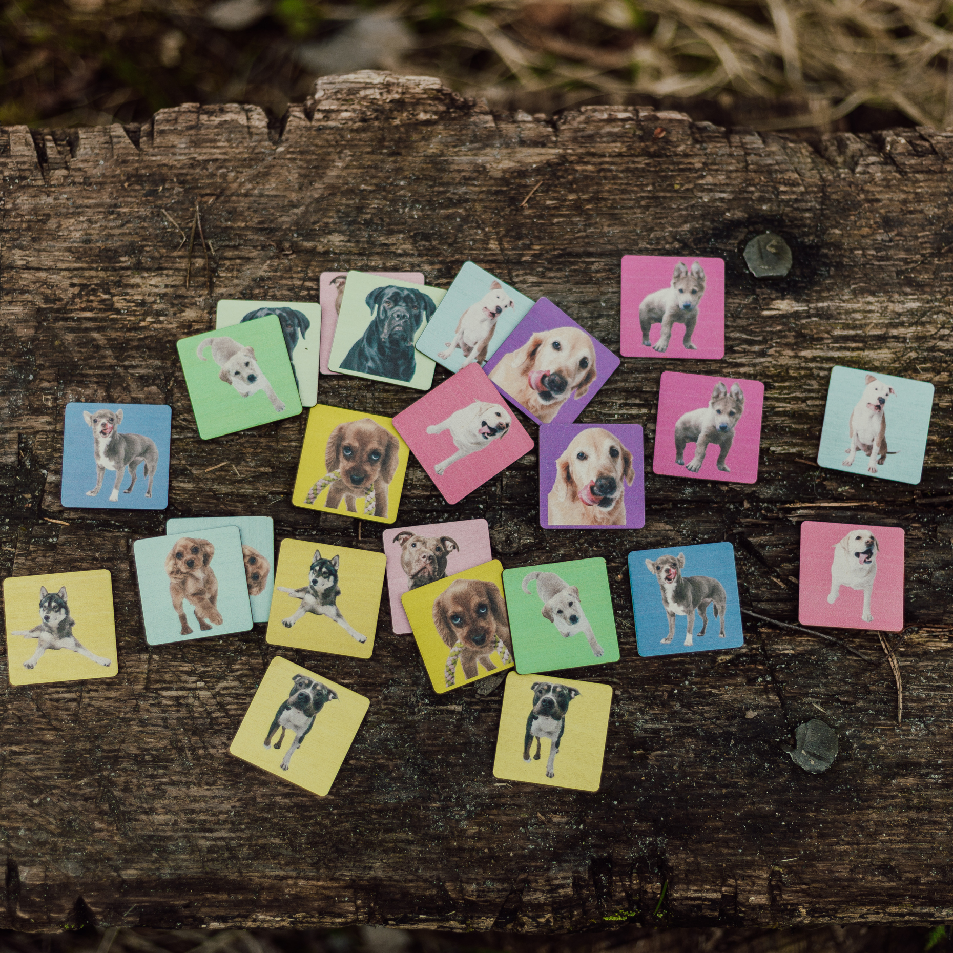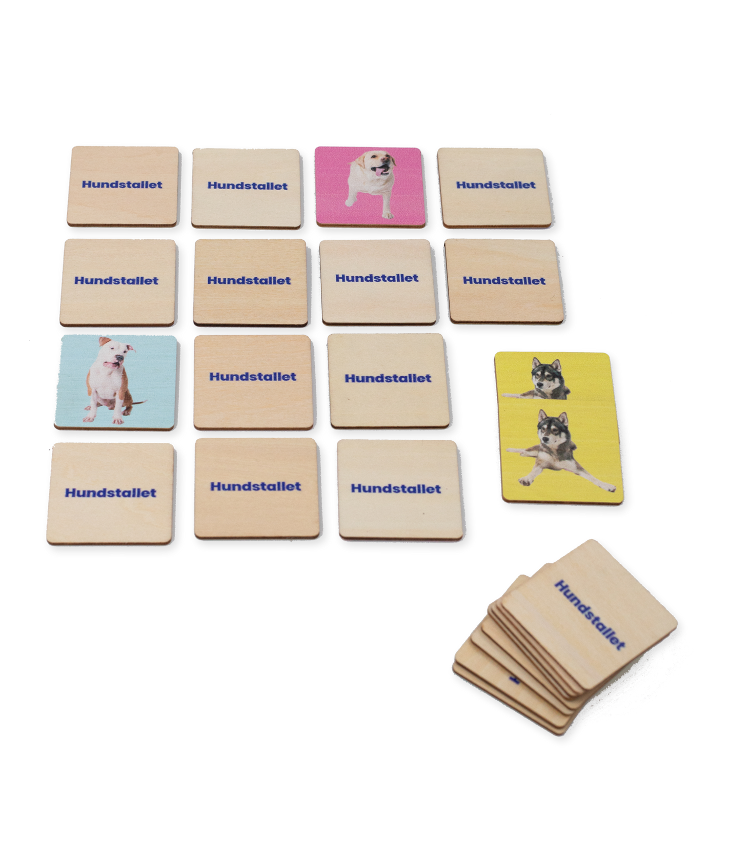 Memory med 12 memorybrickor och 6 olika hundstallshundar som motiv. Ett roligt spel för både barn och vuxna. Ett utmärkt sätt att ha kul på och samtidigt träna minnet.